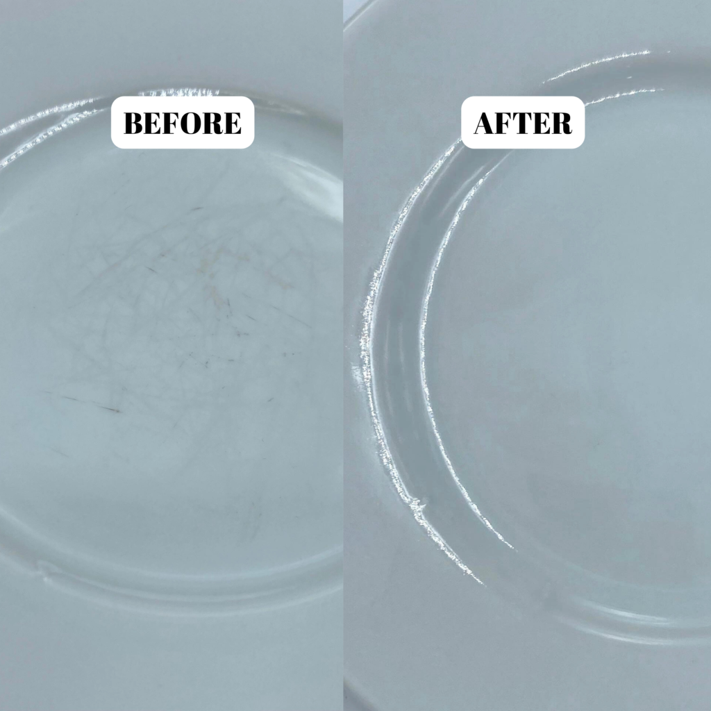 Effectively removes metallic marks from glazed ceramic surfaces